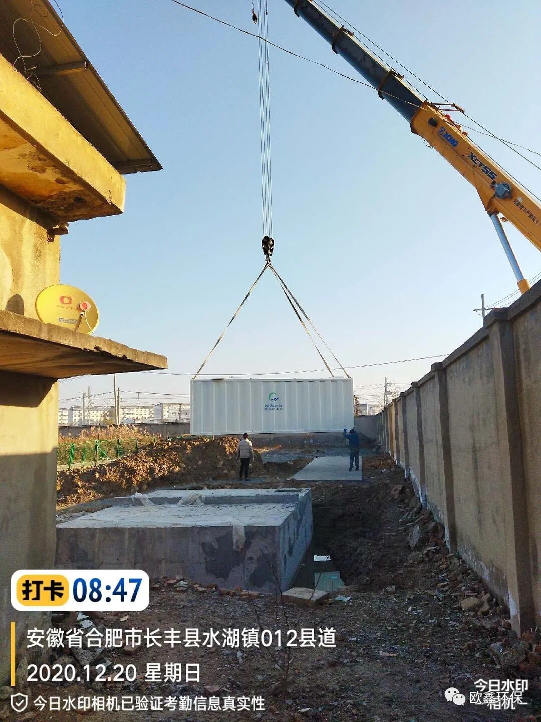 12月20日,合肥市长丰县水湖镇污水处理设备完成进场。