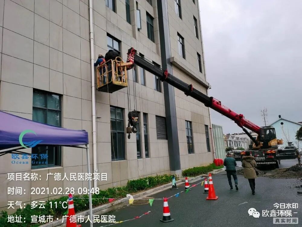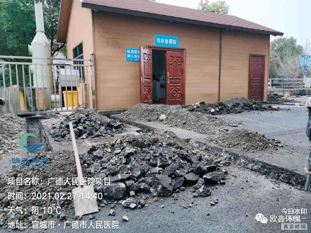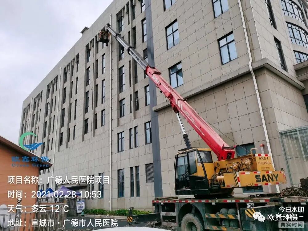 2月24日,广德市人民医院废气处理项目土建及管道部分开始施工,图为项目施工现场。